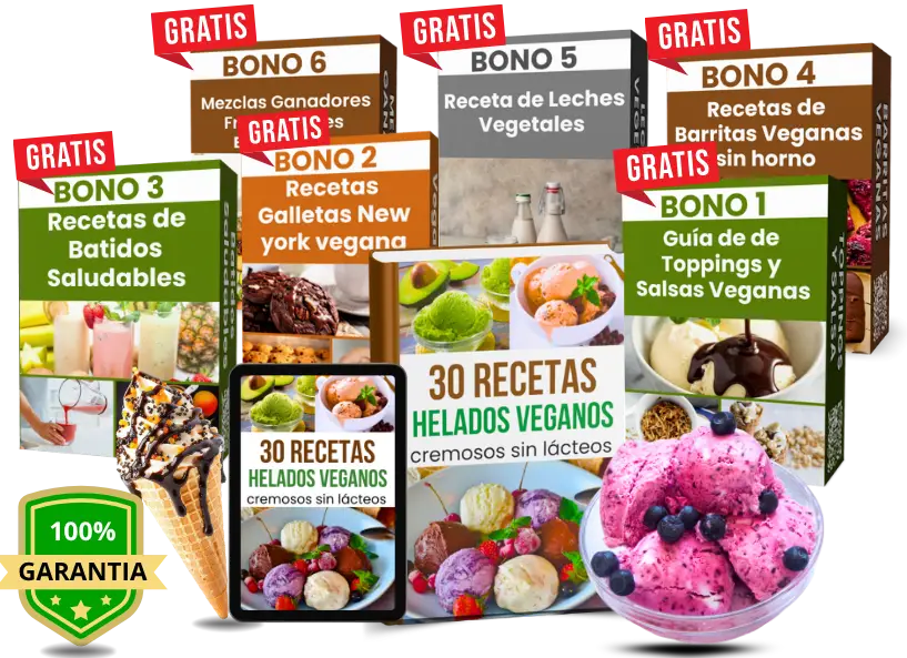 Recibirás acceso inmediato a tu libro digital “30 Recetas de Helados Veganos” con todos los módulos y 3 bonos exclusivos: